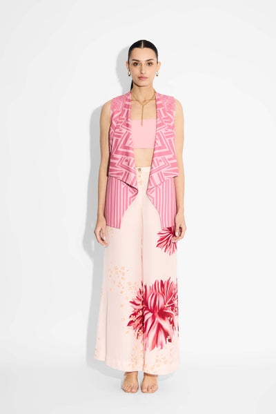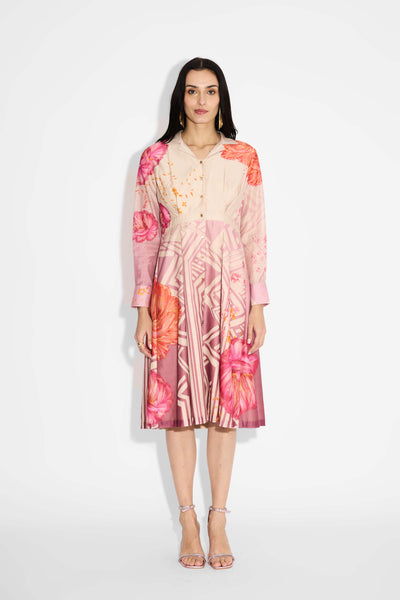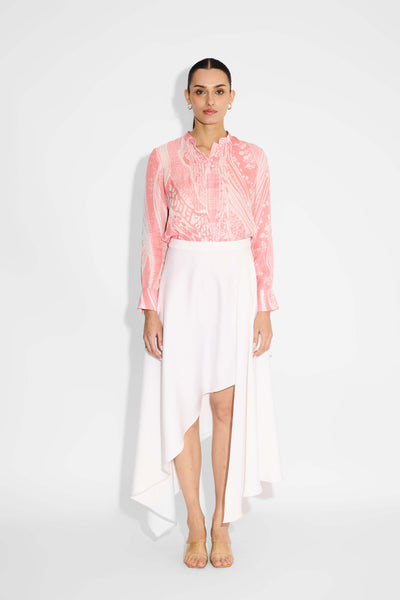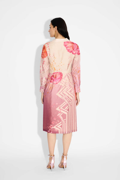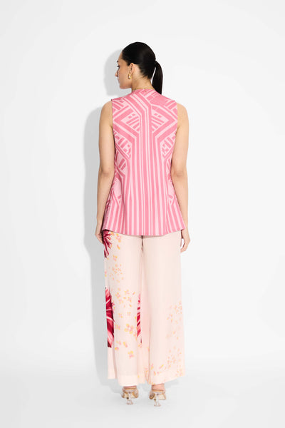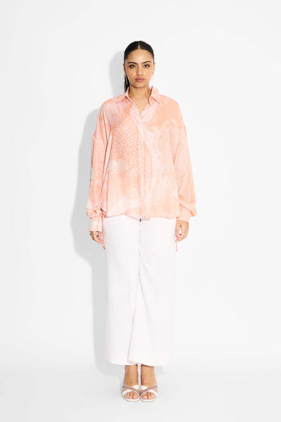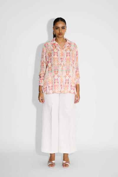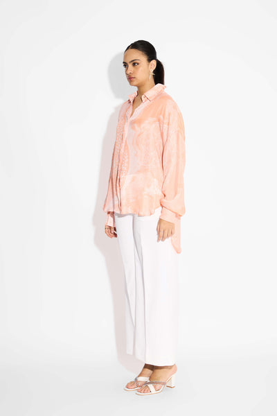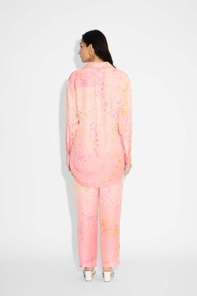 Pink Amorphous Print Pintuck Shirt