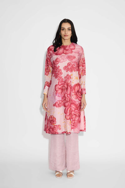 Pink Floral Straight Kurta