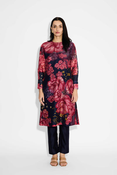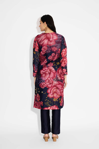 Blue Floral Straight Kurta