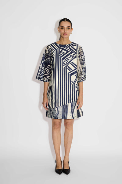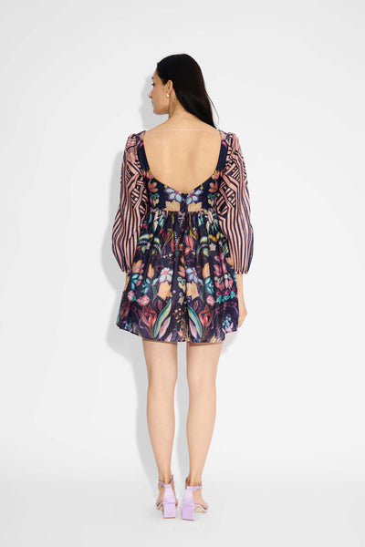 Blue Floral & Stripes Mini Dress