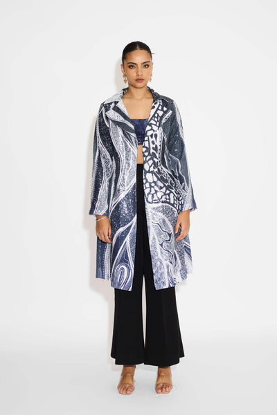 Amorphous Blue Lapel Sequin Jacket