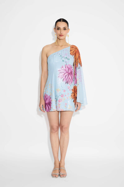 Floral One Shoulder Sequins Dress
