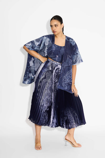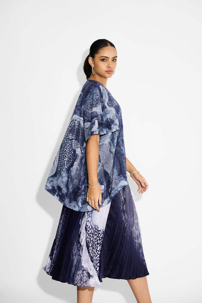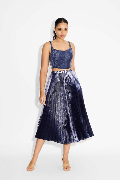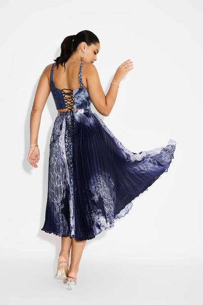 Blue Swirl Pleated Skirt