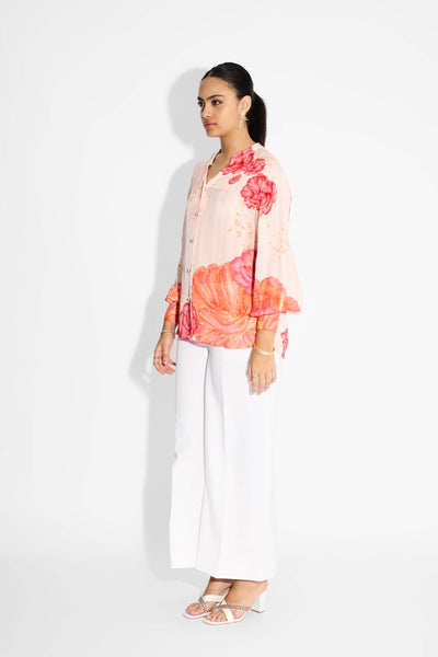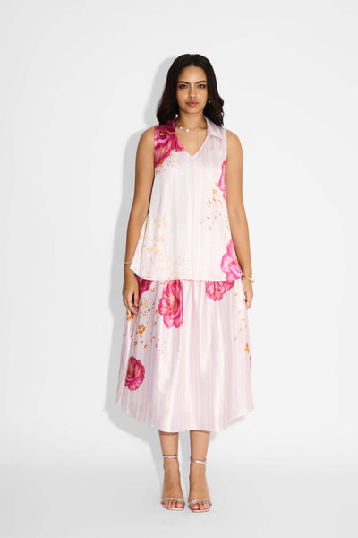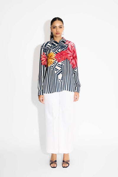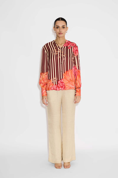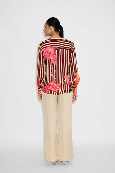 Misty Rose Stripe Floral Shirt
