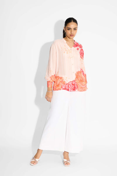 Multi-Floral Beige Placket Top