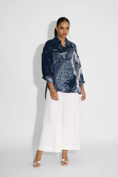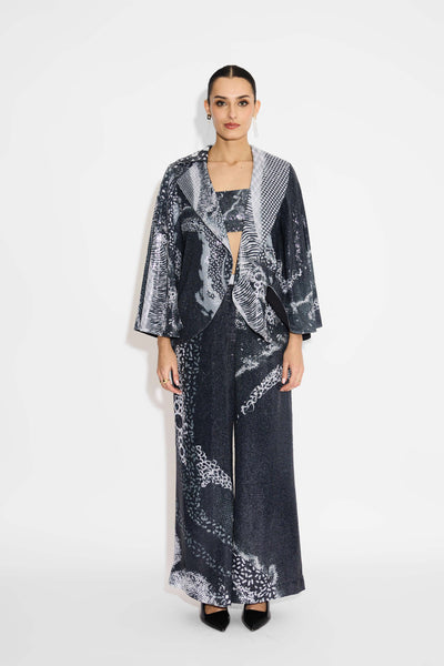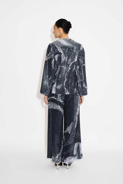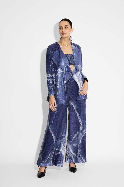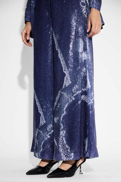 Amorphous Print Blue Sequins Wide Leg Pant