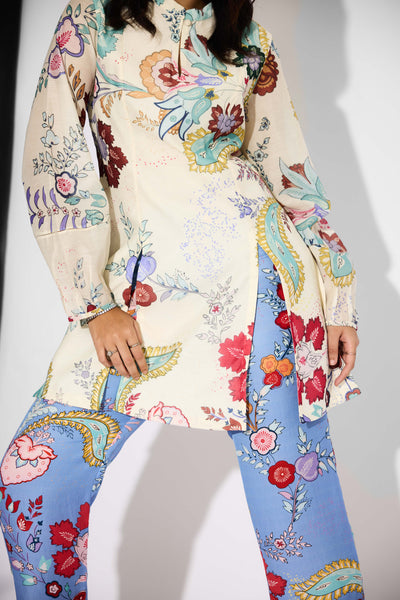 Ivory Chintz Printed Double Slit Kurta