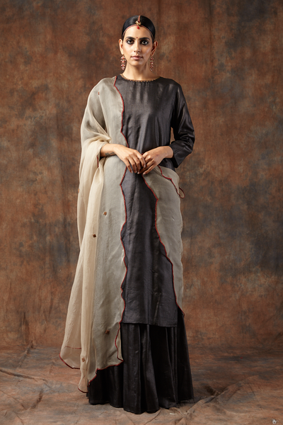 Hand embellished kurta with scalloped dupatta