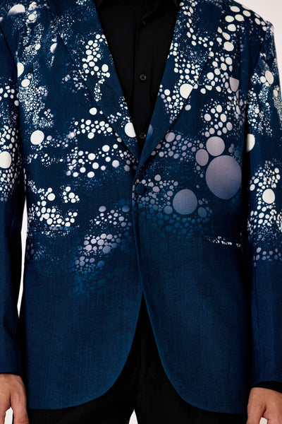 Elevate your formal wardrobe with this navy blue blazer featuring an abstract print design. Crafted for men who appreciate subtle sophistication, it combines classic tailoring with a modern artistic touch. The deep navy shade ensures versatile styling, while the abstract pattern adds a distinctive edge perfect for professional and smart-casual occasions. Its structured fit enhances your silhouette, making it a refined choice for those seeking both style and confidence.