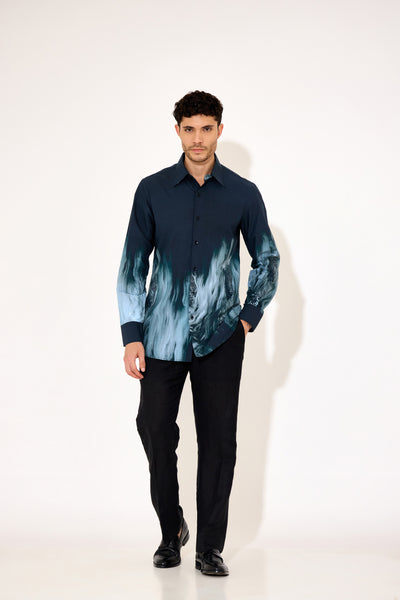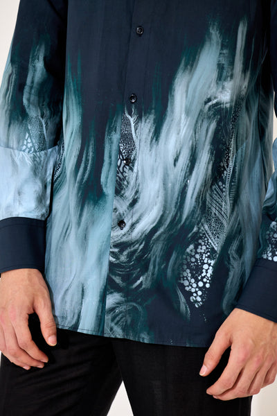 This men's printed poplin shirt features a distinctive abstract print that adds a refined artistic touch to your wardrobe. Crafted from lightweight, breathable poplin fabric, it ensures all-day comfort while maintaining a crisp, polished look. Ideal for both casual outings and smart-casual occasions, this shirt combines style and function with precision.
